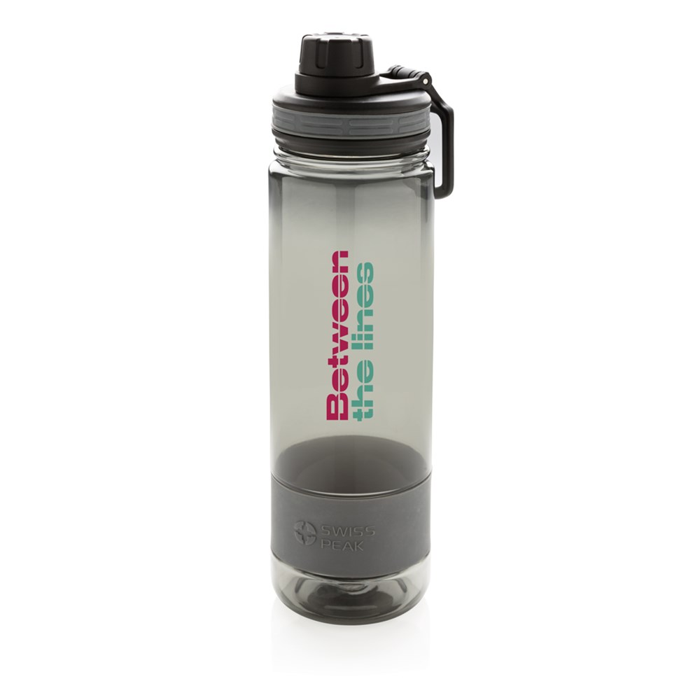 Auslaufgeschützte 750 ml Tritan Flasche, ideal für unterwegs und beim Sport. Mit Silikonring für besseren Halt. BPA frei. Nur Handwäsche.
