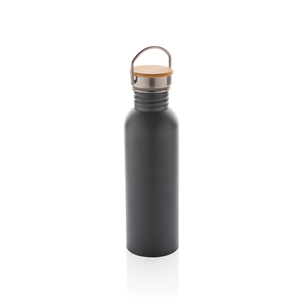 Eine Trinkflasche, die durch ihre Einfachheit schön ist. Diese moderne einwandige Edelstahlflasche mit Edelstahlgriff verfügt über einen Edelstahldeckel mit einer schönen Bambus Applikation. Kapazität 710ml. Nur Handwäsche. BPA frei.