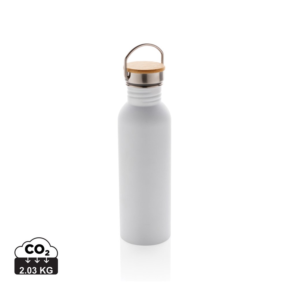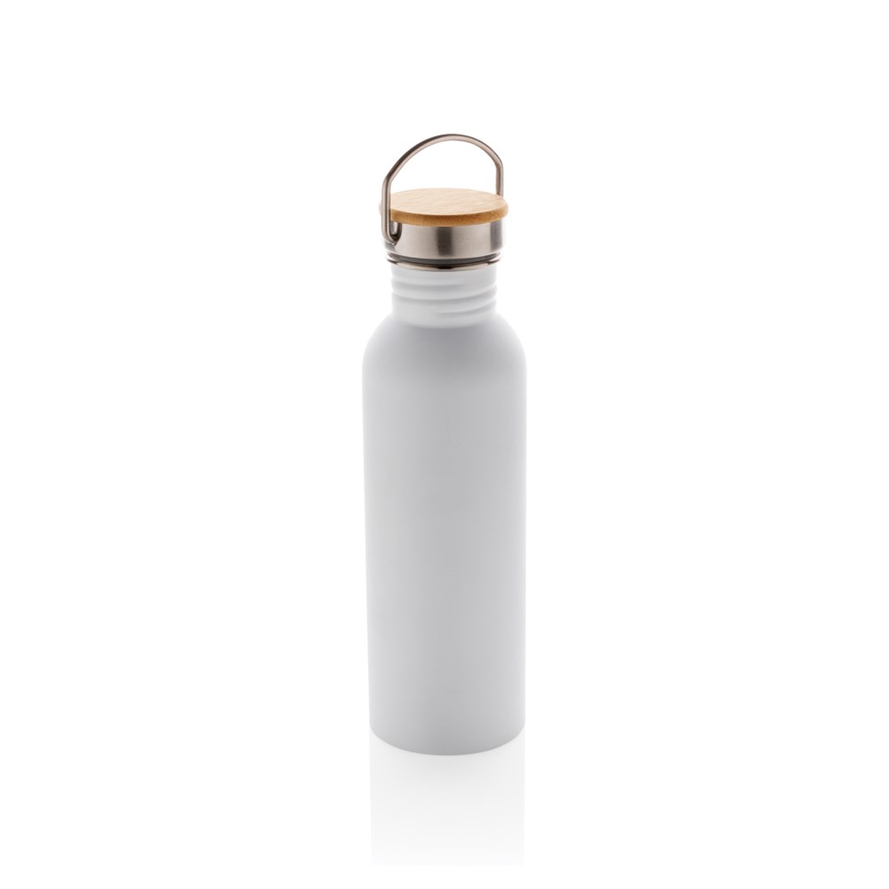 Eine Trinkflasche, die durch ihre Einfachheit schön ist. Diese moderne einwandige Edelstahlflasche mit Edelstahlgriff verfügt über einen Edelstahldeckel mit einer schönen Bambus Applikation. Kapazität 710ml. Nur Handwäsche. BPA frei.