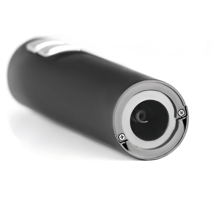 Elektrischer Flaschenöffner. Gehäuse in schwarz-mattem Finish. Inkl. Folienschneider. Exklusive 4 AA Batterien. ABS.