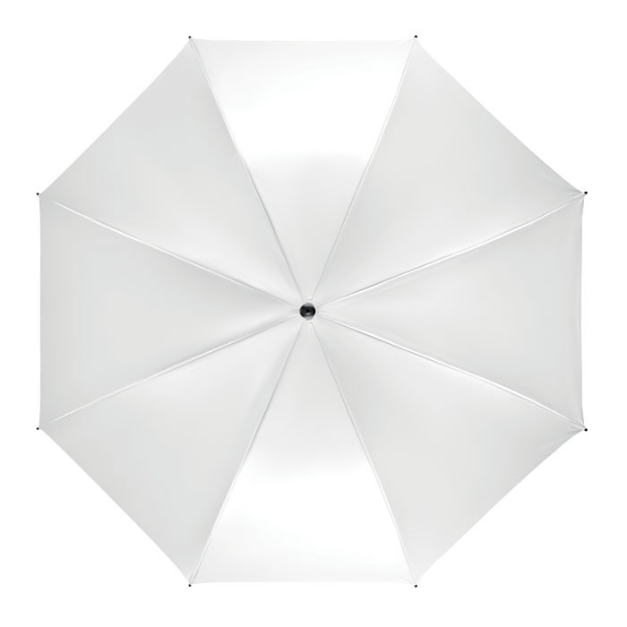 27'' Regenschirm aus 190T Pongee. Windbeständig. Stock und Stangen aus Fiberglas. Schwarze Krone und Spitzen aus Kunststoff. Schwarzer Griff aus ABS mit gummiertem Finish. Automatische Öffnung, manuelle Schließung.
