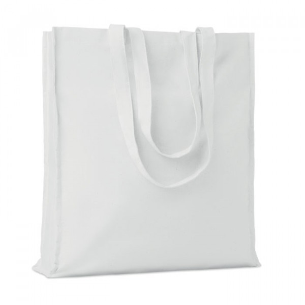 Shopping Tasche mit langen Tragegriffen und seitlicher Falz. Baumwolle 140g/m².