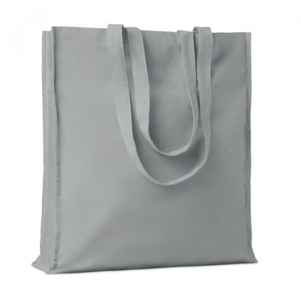 Shopping Tasche mit langen Tragegriffen und seitlicher Falz. Baumwolle 140g/m².