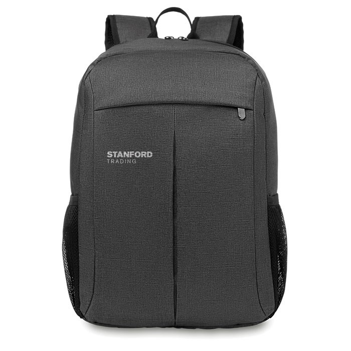 15'' Laptop Rucksack aus 2farbigem 360D Polyester. Inklusive Laptop- und Tablet-Fach sowie Frontfach mit Reißverschlussfach. Gepolsterte Rückseite und gepolsterte Schultergurte. Mit Trolley-Halterung.