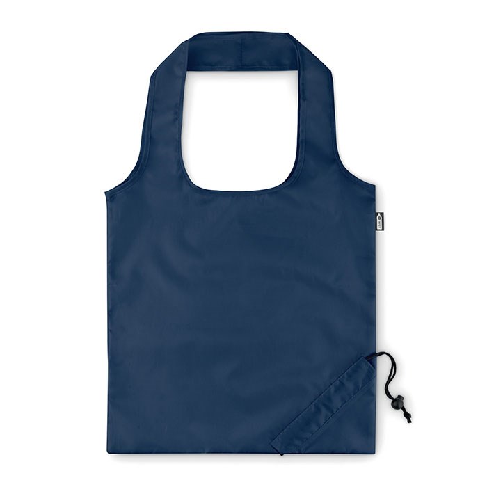 Faltbare Einkaufstasche mit kurzen Tragegriffen und Kordelzug. Der Artikel wird ungefaltet geliefert. 190T RPET.
