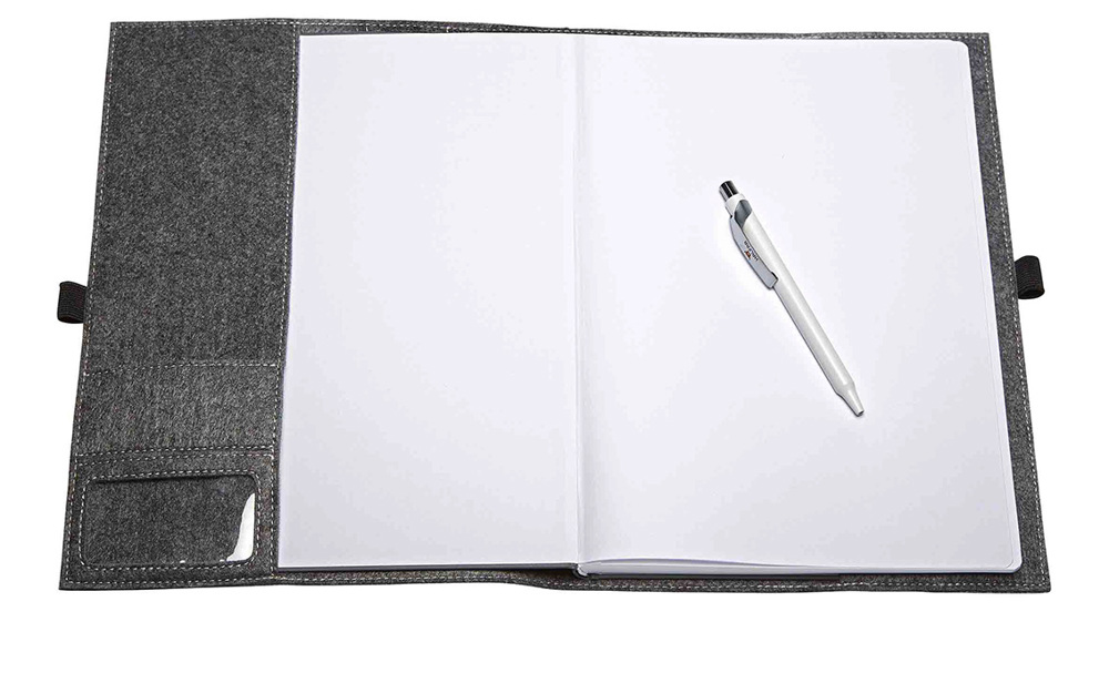 wertige Filzhülle geeignet für DIN A4-Notizbücher; Einsteckfächer; Stiftschlaufe zum Verschließen der Hülle
