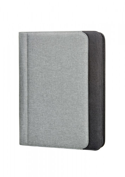 Schreibmappe mit Organizer-Elementen; verschließbar mit Reißverschluss; flaches Einsteckfach auf der Front; flaches Einsteckfach innen; diverse Karten-Einsteckfächer; Gummischlaufen für z.B. USB-Stick, Kugelschreiber etc.; Klett-Lasche zum Aufstellen von digitalen Geräten; inkl. Schreibblock