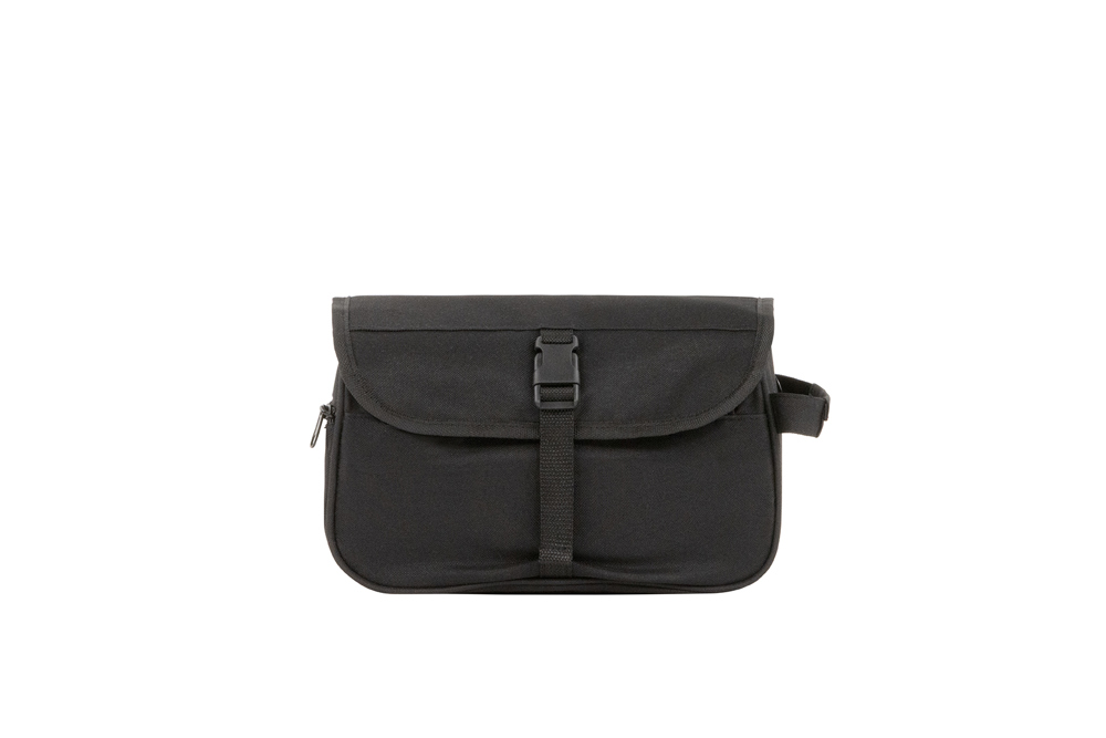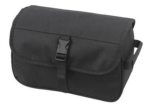 zum Aufstellen oder -hängen; gepolstertes Hauptfach; drei Reißverschluss-Einsteckfächer; mit Steckschnalle; Handgriff