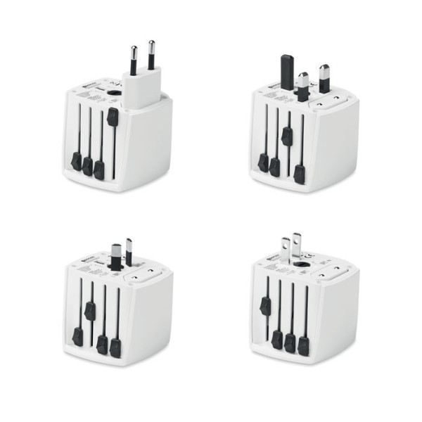 Zwei-poliger universal Reise-Adapter (nur für ungeerdete Geräte) für Europa, USA/Japan, Australien/China. Erfüllt alle relevanten internationalen Sicherheitsstandards und Normen. Mit Kindersicherung.