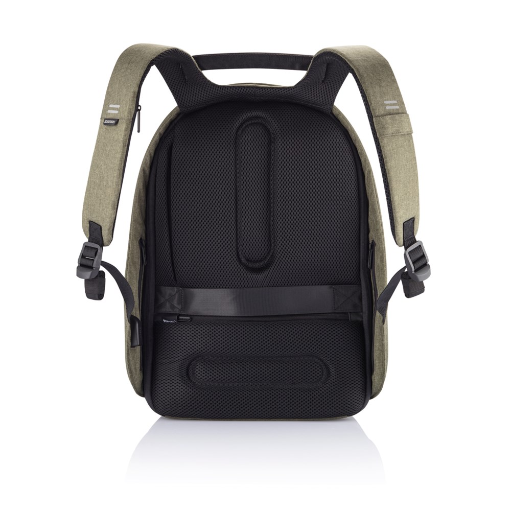 Die Bobby Hero-Linie repräsentiert eine neue Ära der Anti-Diebstahl-Rucksäcke und bietet Sicherheit, Komfort und Organisation für Ihre täglichen Reisen. Schnittfester Schutz, diskrete Reißverschlüsse und verdeckte Taschen sorgen für die Sicherheit Ihrer Habseligkeiten auf dem Weg zum Arbeitsplatz. Der Bobby Hero Regular ist mit einem integrierten USB-Ladeanschluss, wasserabweisendem Material, leuchtenden Sicherheitsstreifen und einem Gepäckgurt für zusätzlichen Komfort ausgestattet. Die gepolsterten Fächer im Inneren bieten Platz für einen 15,6"-Laptop und ein Tablet bis zu 12,9". Hergestellt aus rPET mit dem AWARE™-Tracer, der die Verwendung von echtem Recycling-Gewebe garantiert. 29% recycelter Inhalt. Registered Design®