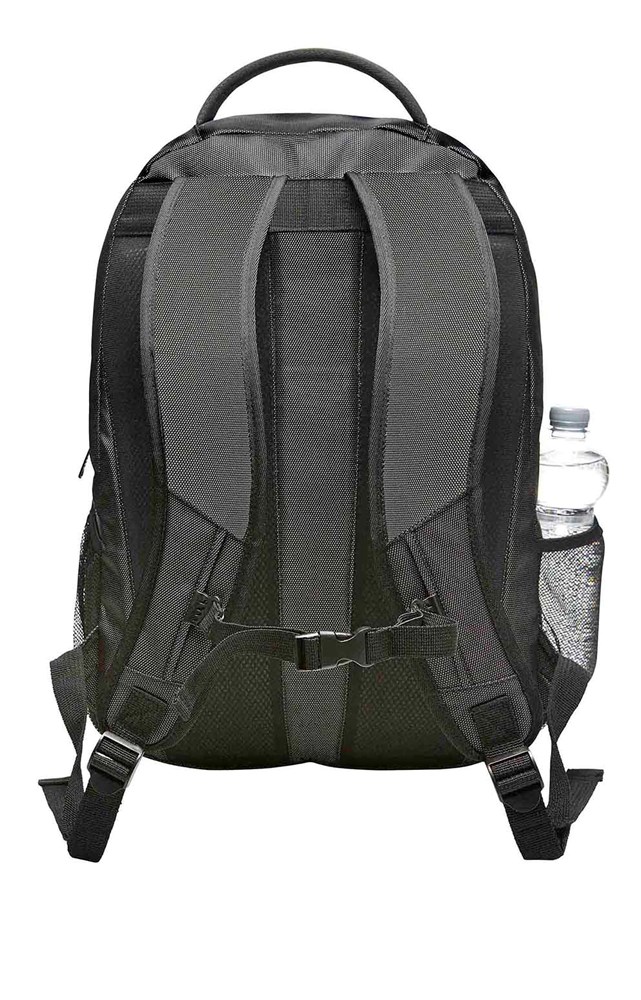 aufwändig gearbeiteter Notebook-Rucksack mit Reflex-Besatz; gepolsterter Handgriff; Hauptfach mit 2-Wege-Reißverschluss; Notebookfach; Vortasche mit 2-Wege-Reißverschluss und Organizer; Reißverschluss-Tasche mit Velours-Innenfutter und wasserabweisendem Reißverschluss; seitliche Netzfächer; seitliche Reißverschluss-Tasche z.B. für Regenschirm; gepolsterter Boden und Rücken; gepolsterte Träger mit höhenverstellbarem Brustgurt
