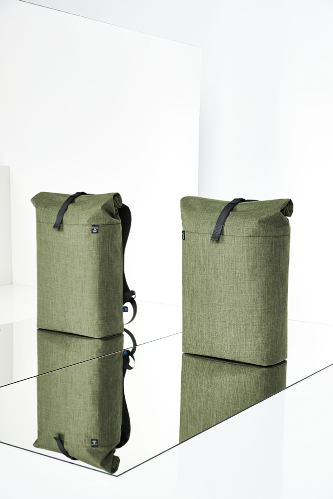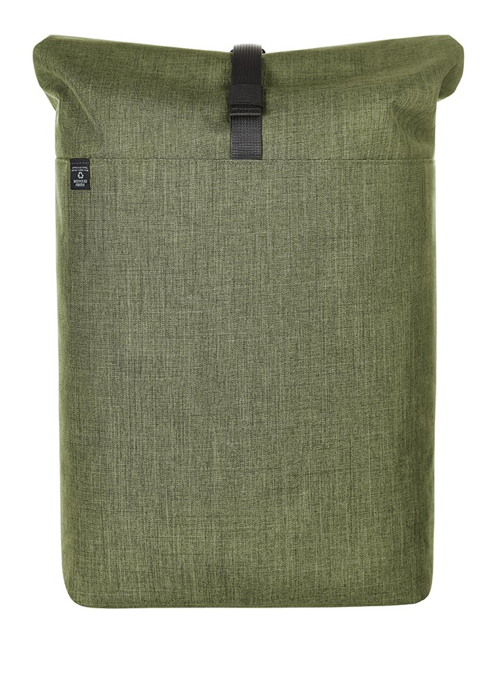 urbaner Rucksack mit Magnet- und Wickelverschluss; geräumiges Hauptfach mit gepolstertem Notebookfach; rPET Obermaterial; rückseitige Reißverschlusstasche; aufwändig gepolsterter Rücken mit verstecktem Reißverschlussfach; gepolsterter Boden; längenverstellbare gepolsterte Schultergurte mit Gummischlaufen zum Befestigen von z.B. Sonnenbrille; Handgriff