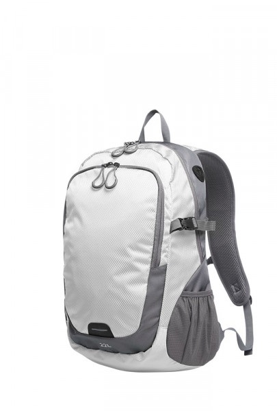 geräumiges Hauptfach mit 2-Wege-Reißverschluss und Einsteckfach innen; seitliche Zurrgurte; Reißverschluss-Vortasche mit zwei Einsteckfächern; Reflektor-Streifen vorne; seitliche Netzfächer; Kopfhörerausgang; gepolsterte Schultergurte mit höhenverstellbarem, dehnbarem Brustgurt; gepolsterter Rücken