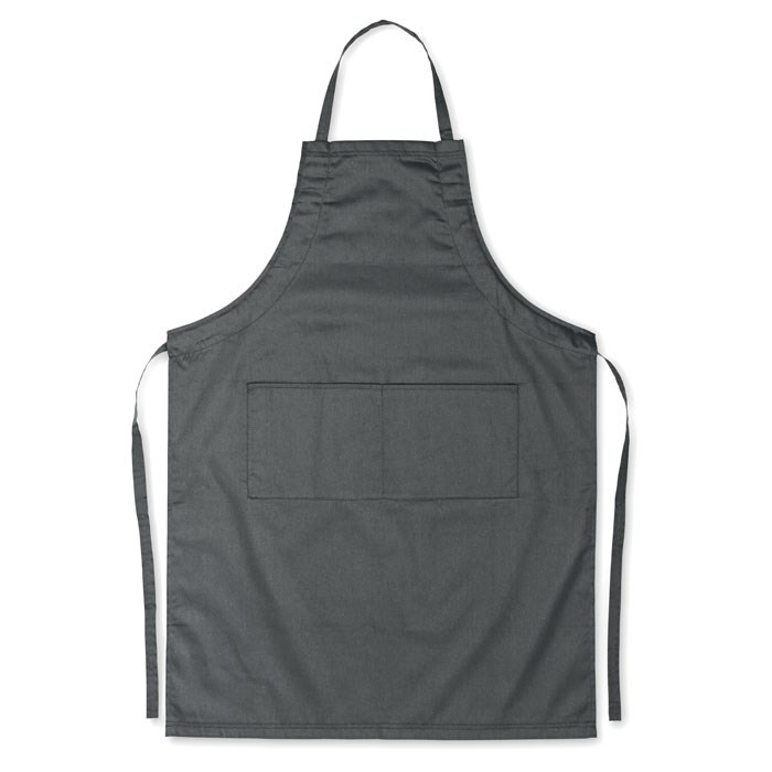 Küchenschürze mit verstellbarem Nackenband und 2 Fronttaschen. 10% Baumwolle / 90% Polyester, 190 g/m².