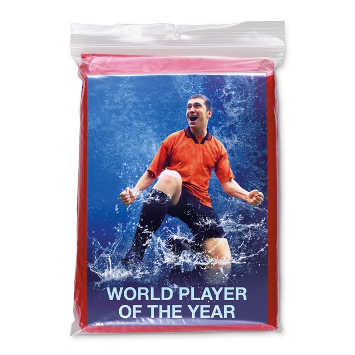Regenmantel mit Kapuze. Praktisch, klein gefaltet. Verpackt in einem transparenten Polybeutel.